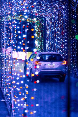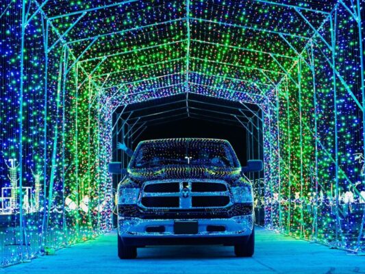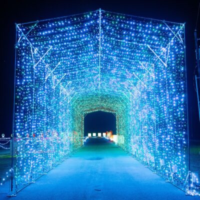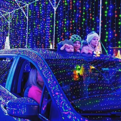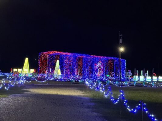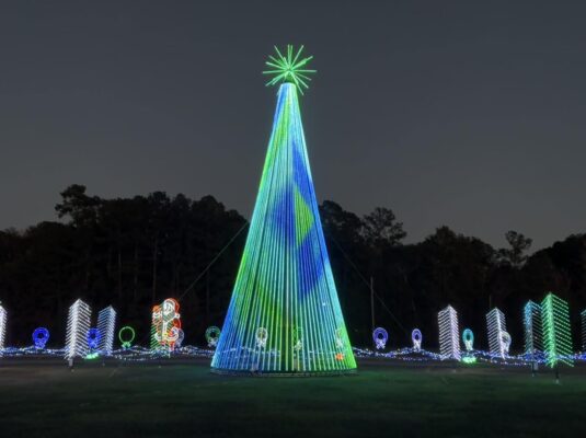 The Merriest Mile is a drive-through Christmas Light Adventure featuring over a mile of synchronized lights, an animated band, and Louisiana’s tallest MegaTree.
