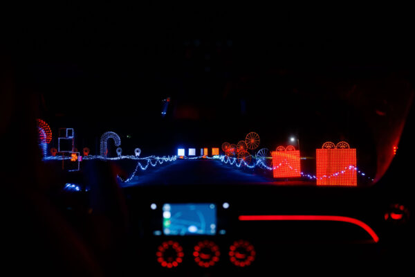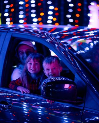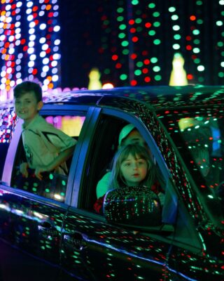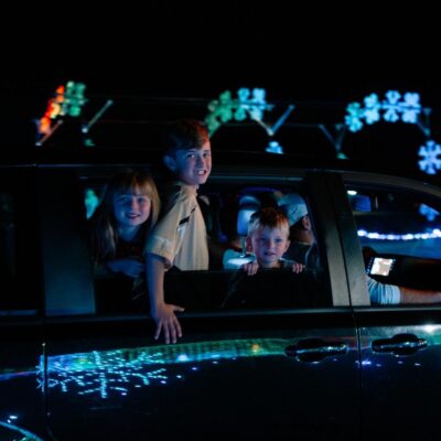 Enjoy the magic from your car and see if you can spot the hidden red crawfish and green alligators!